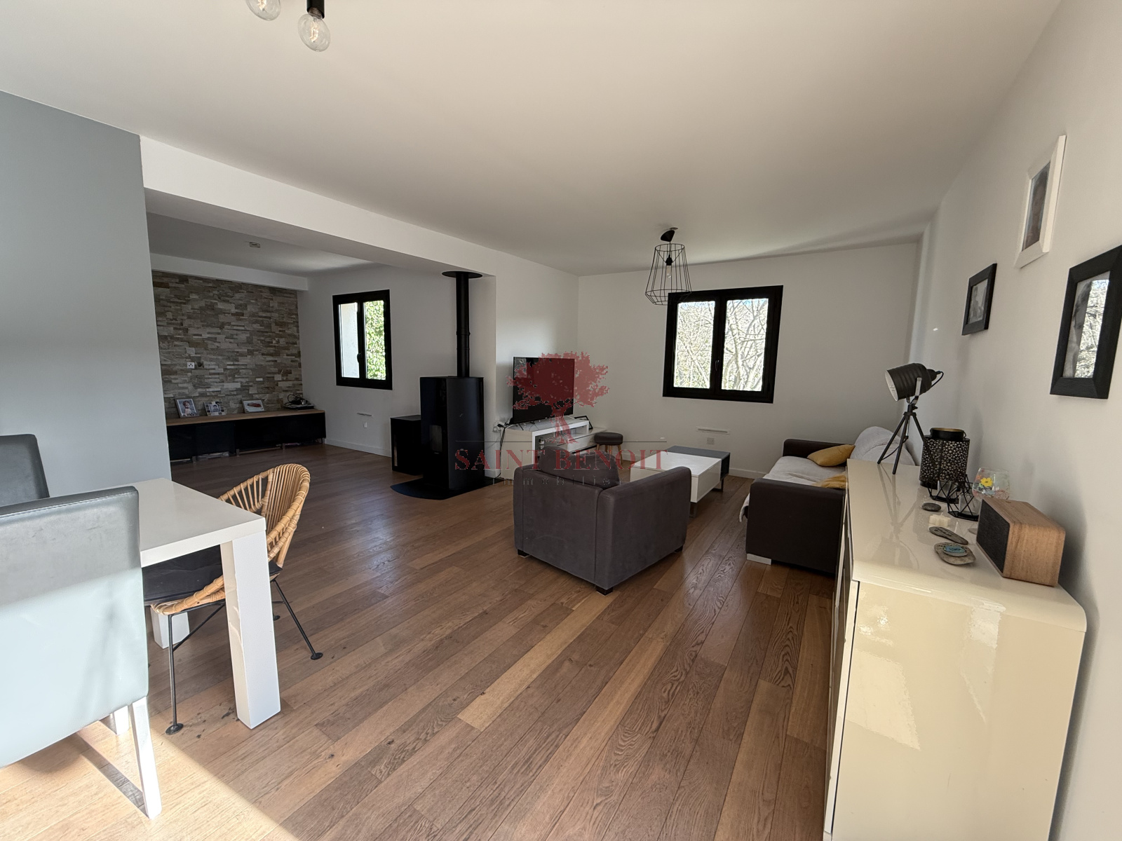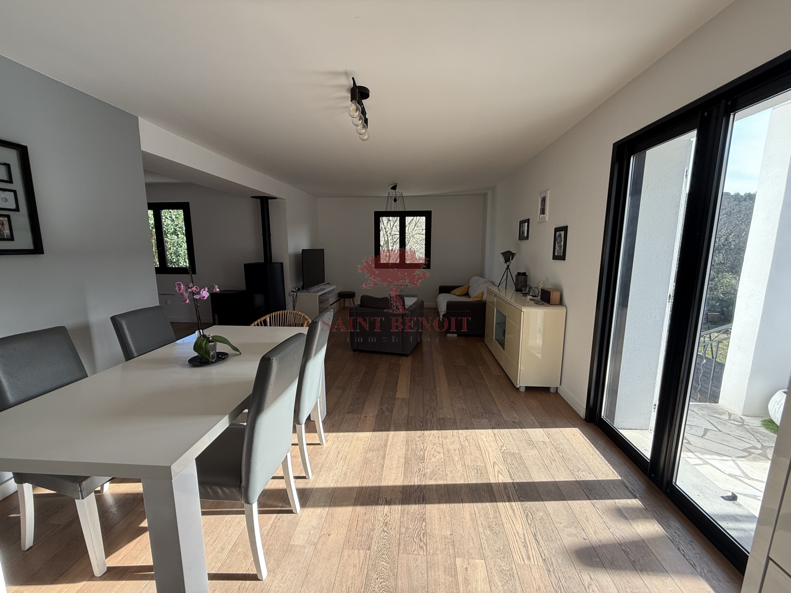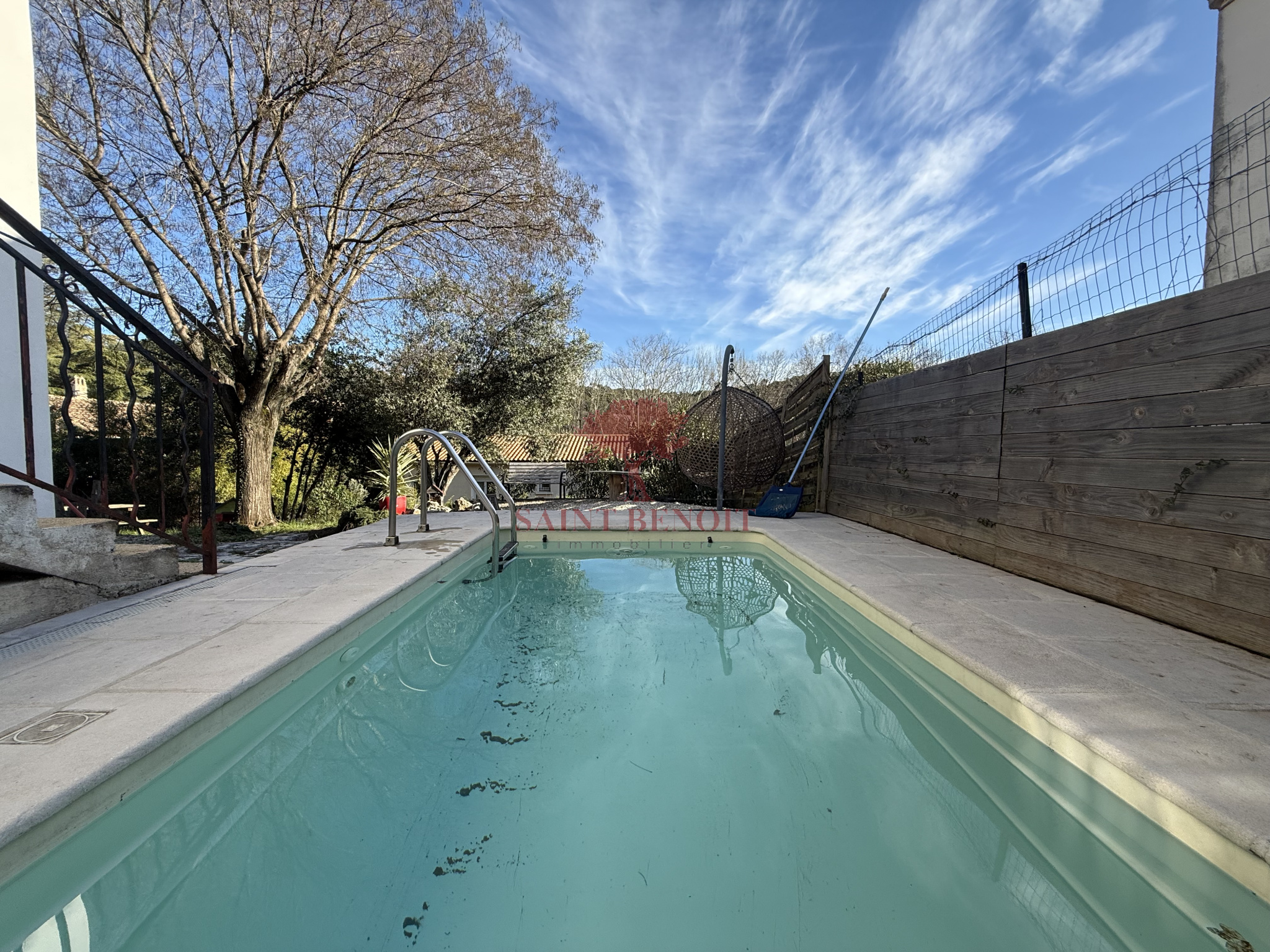 ANIANE A vendre agréable villa de construction traditionnelle, de type cinq pièces d'une surface habitable de 141 m², bénéficiant d'une jolie vue sur la campagne. Jardin arboré de 577 m² avec sa piscine, belle pièce à vivre de 41 m², cuisine ouverte entiérement équipée, quatre chambre, bureau, salle de bains et salle d'eau. Climatisation réversible et poële à granules. La maison est en très bon état. Pour l'achat de cette maison, veuillez contacter l'agence SAINT-BENOIT-IMMOBILIER à ANIANE ou à GIGNAC