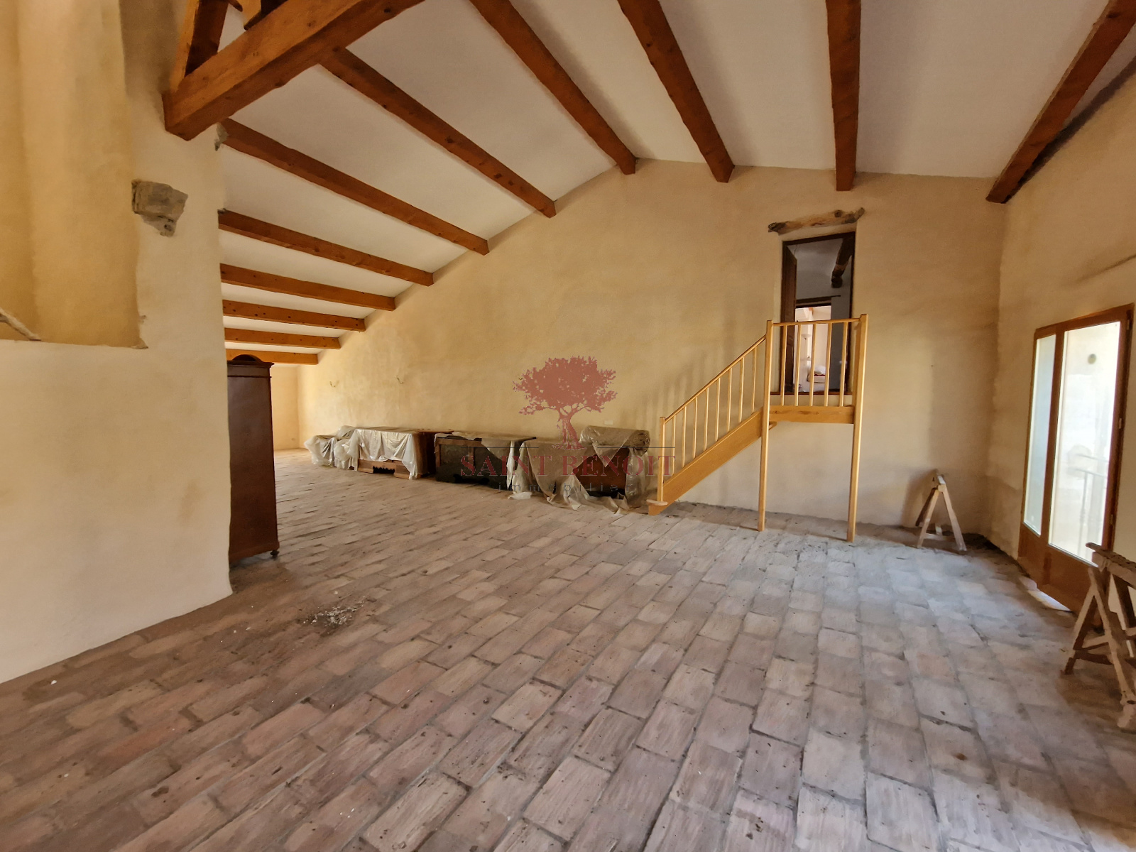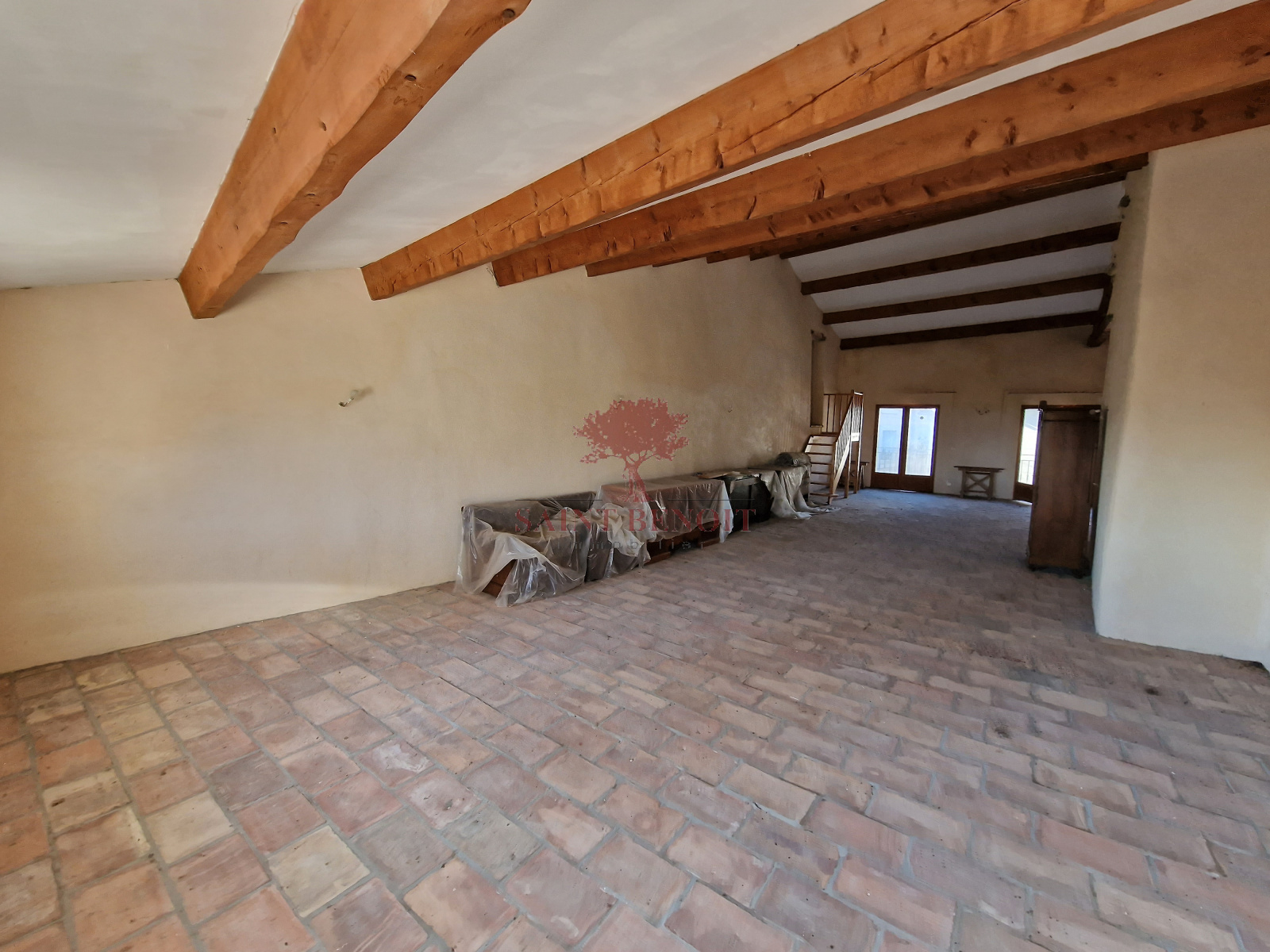 Poutres bois apparentes et sol parefeuille