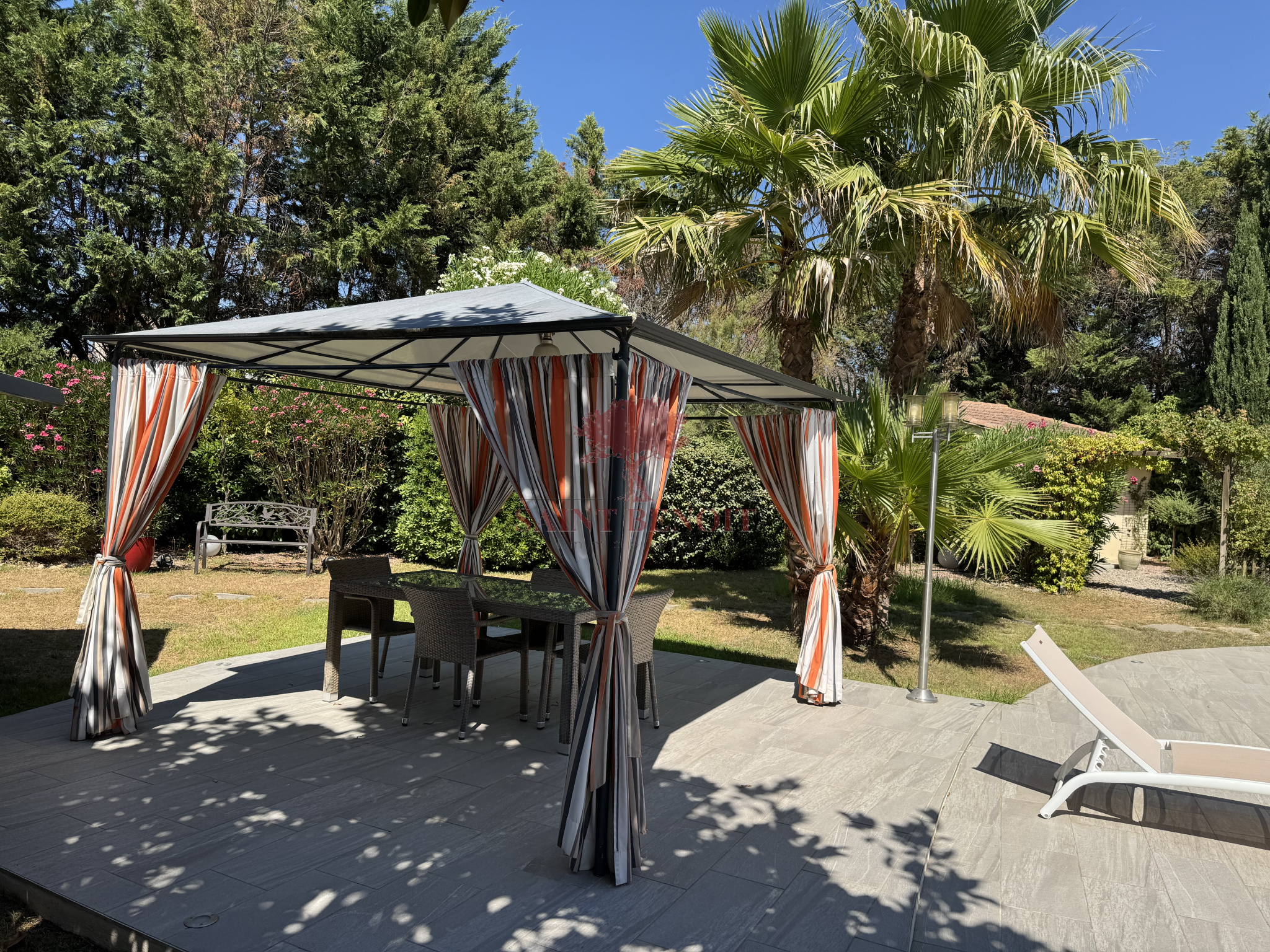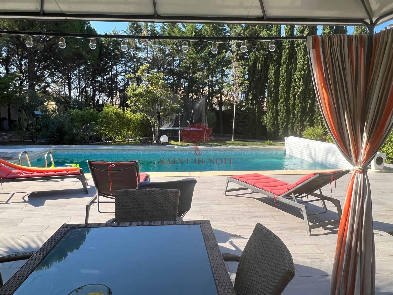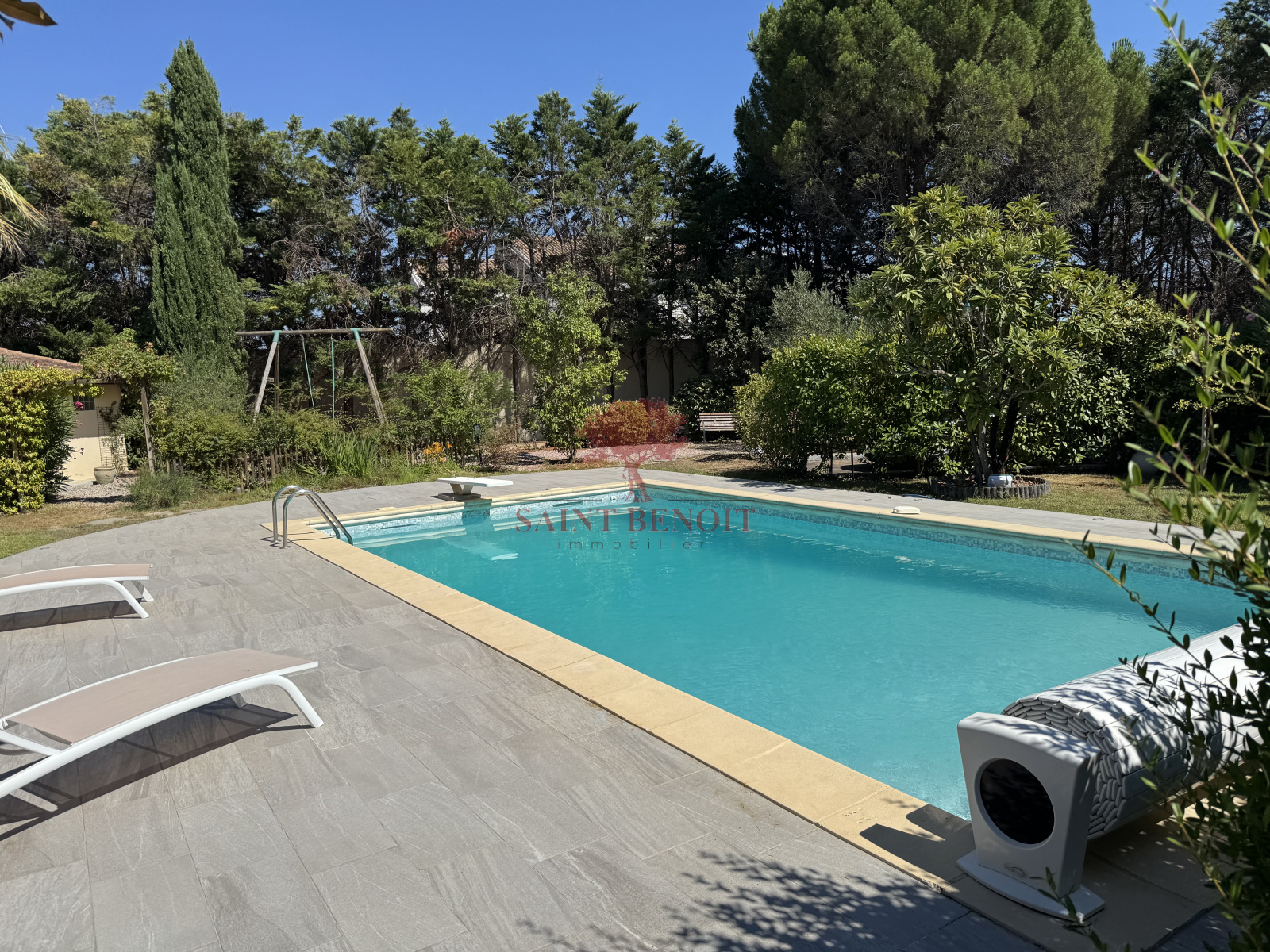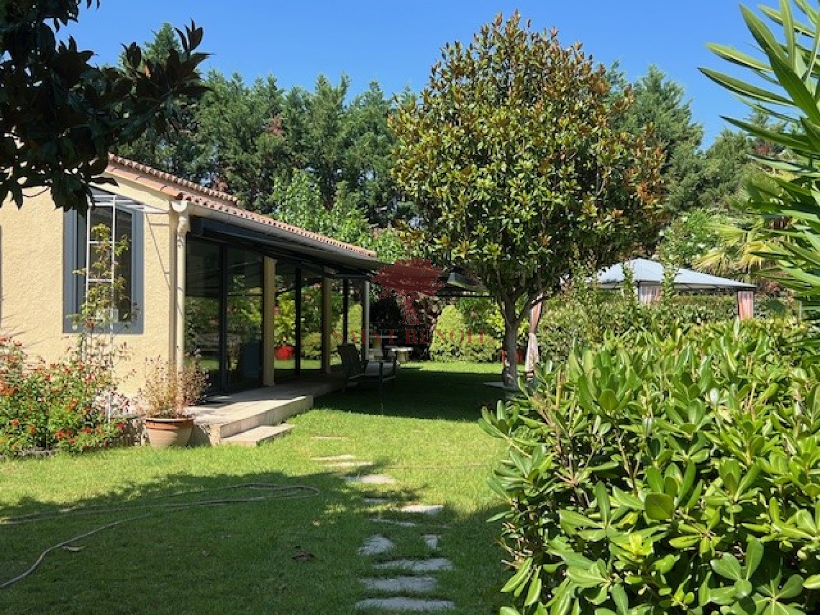 A 25 mn à l'ouest de MONTPELLIER, Dans un environnement calme, superbe maison de plain-pied de 220 m² habitables, rénovée en 2011, entièrement climatisée, dans un écrin de verdure de 2092 m², clôturé et très arboré mis en valeur par un éclairage nocturne. Très belle pièce à vivre de 68 m² avec une cheminée-insert, une cuisine entièrement équipée, ouverte sur une grande véranda trés lumineuse de 48 m², 4 chambres, une salle de bains et une salle d’eau avec WC, un WC indépendant, de nombreux placards, un cellier, garage. Une piscine traditionnelle 5x10, équipée d’un plongeoir d’une échelle et d’un rideau couvrant de sécurité, pool house et abri de jardin. Prestations de qualité : arrosage automatique avec l’eau du Canal de GIGNAC. Pour toute visite, contactez M. Jean-François SOULIER de l’agence Saint-Benoit-Immobilier, à Aniane ou Gignac.