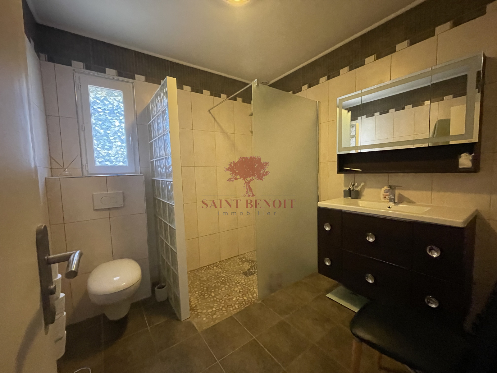 douche , meuble sous simple vasque , WC
