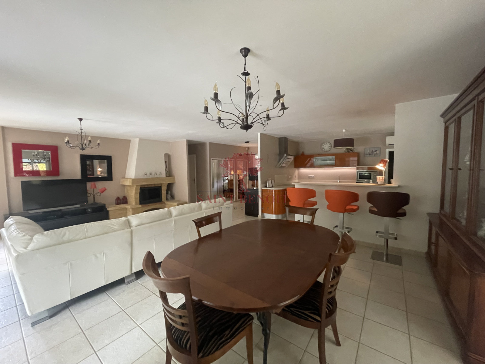 donne sur la cuisine et la véranda