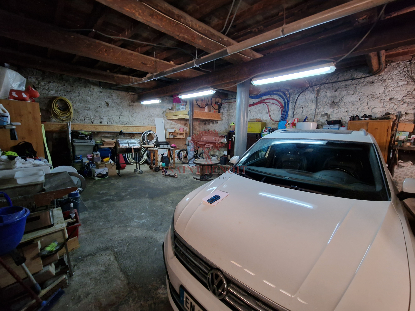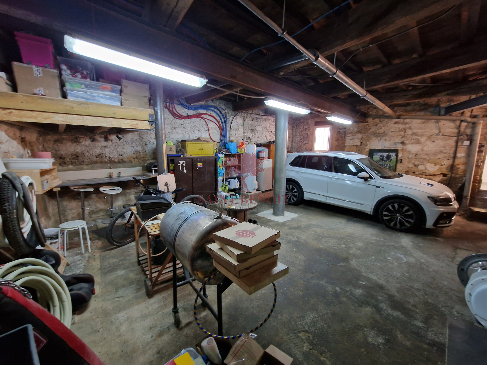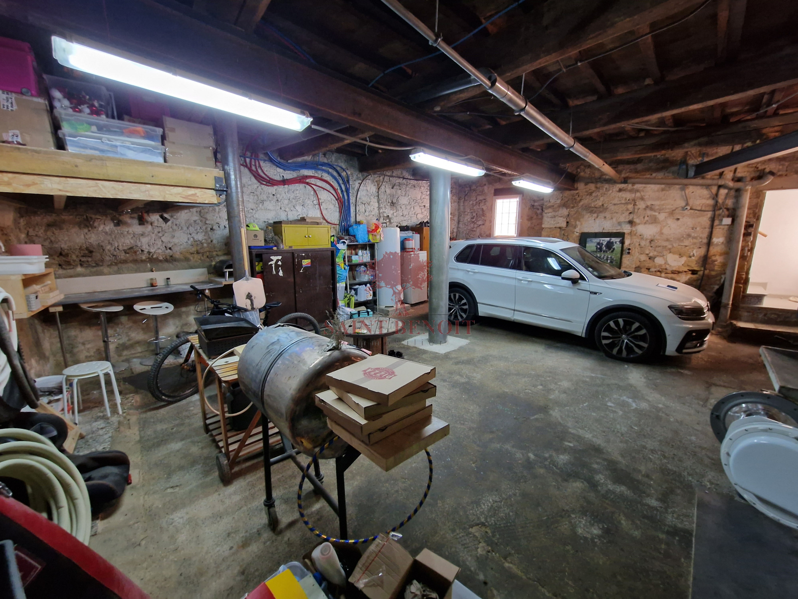 Au rez-de-chaussée: un grand garage avec coin buanderie et cave à vin de 62m².