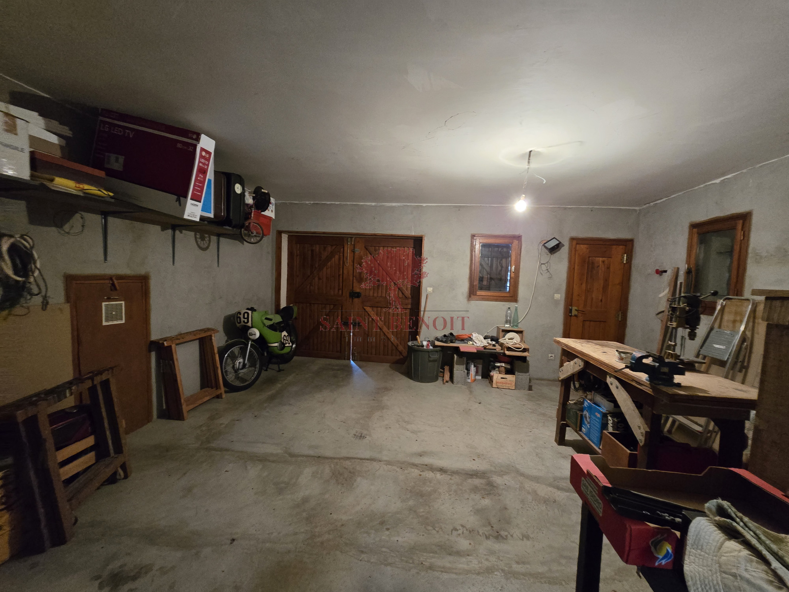 Un espace à vivre en rez-de-chaussée comprenant: Un salon lumineux de 48m² avec cheminée insert et climatisation, une grande cuisine, un cellier, une belle chambre de 15.8 m², une salle de bains, un WC et un garage indépendant pouvant permettre une extension pour une chambre supplémentaire.