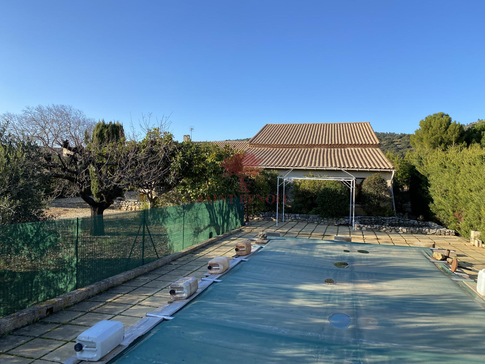 EXCLUSIVITE à vendre proche de GIGNAC, villa de construction traditionnelle de type quatre pièces de plain-pied d'une surface habitable de 130 m² avec garage de 48 m² grand séjour de 44 m² avec beaux volumes et sa cheminée, climatisation réversible cuisine entièrement équipée de 19 m², trois chambres avec placards, salle de bains avec baignoire et douche. Vous serez séduits par son superbe jardin de 2000 m² arboré d'oliviers et d'arbres fruitiers avec sa piscine 9x4. Pour l'achat de cette maison veuillez contacter l'agence SAINT BENOIT IMMOBILIER à ANIANE ou GIGNAC.