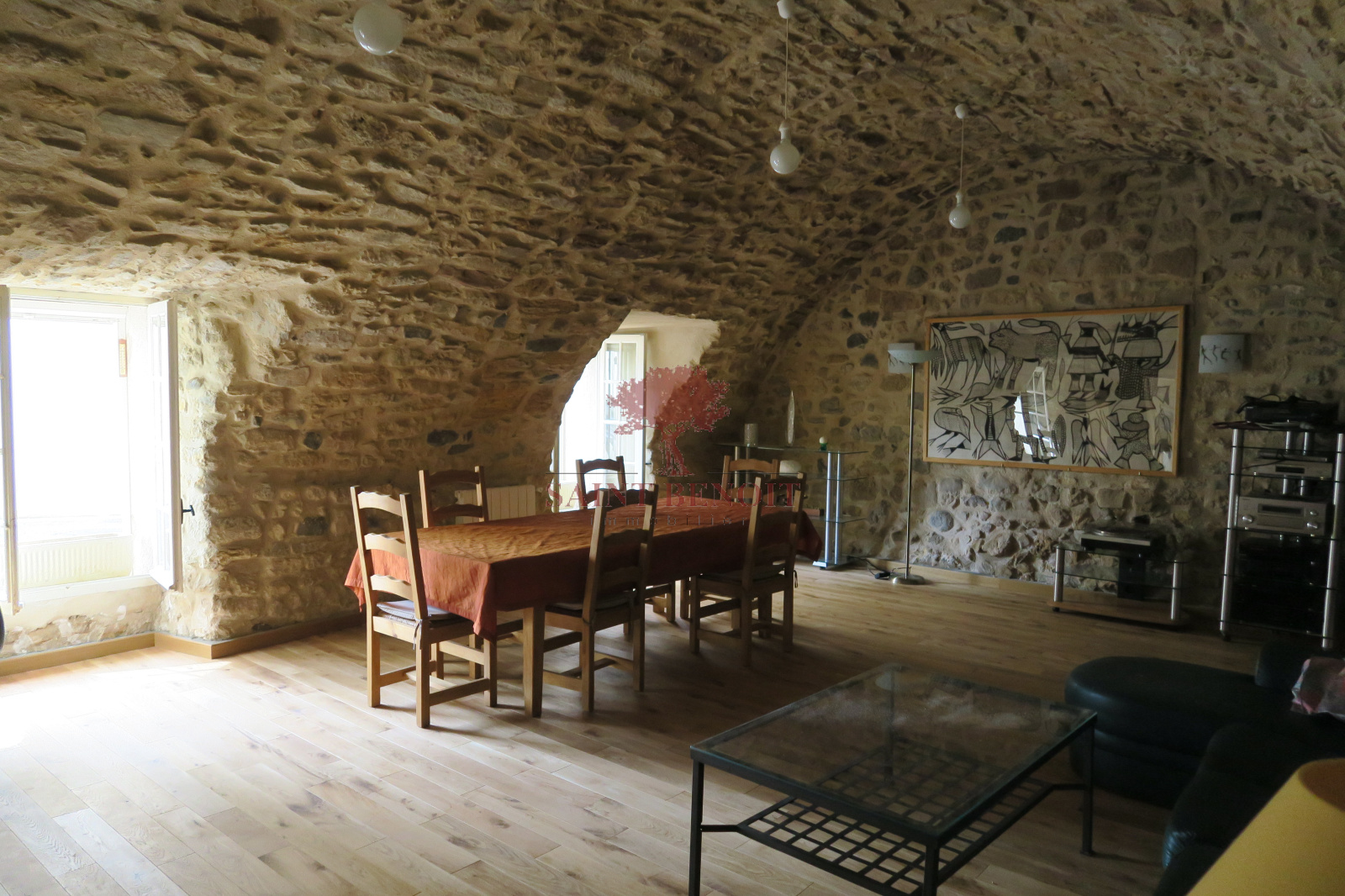 Lieuran-Cabrières - A vendre maison de village entièrement restaurée, surface habitable 150 m², quatre pièces, superbe salon voûté 45 m² avec pierres apparentes, cheminée insert, cuisine aménagée, trois chambres, terrasse et dépendances. Chauffage central fuel, huisseries double vitrage. Le coup de coeur ! Pour l'achat de cette maison contactez Saint Benoit Immobilier